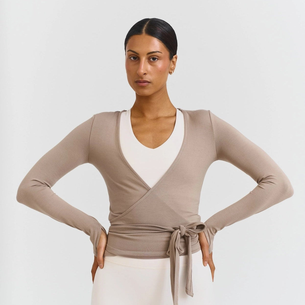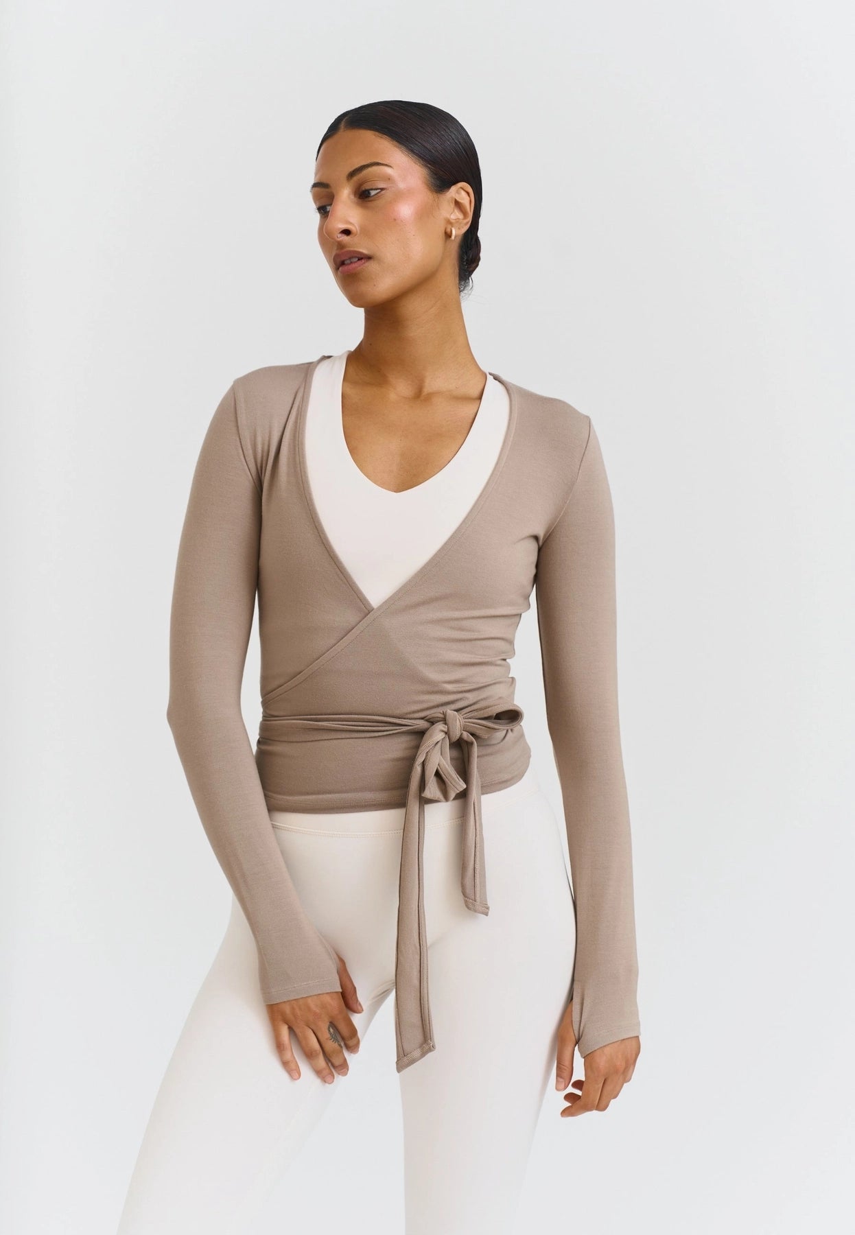 Dieses Ballet Wrap Top ist ein echtes Multitalent: super cozy, stretchy und so elegant wie ein Ballett-Moment. Hergestellt aus butterweichem, atmungsaktivem Lenzing™ Modal – perfekt für Yoga, Pilates oder einfach deinen busy Alltag. Mit verstellbaren Bändern, Daumenlöchern und einem schmeichelnden Schnitt passt es sich dir und deinem Flow an. Ob mit Leggings oder Tailoring – dieses Wickel-Top bringt easy Eleganz in jedes Outfit.