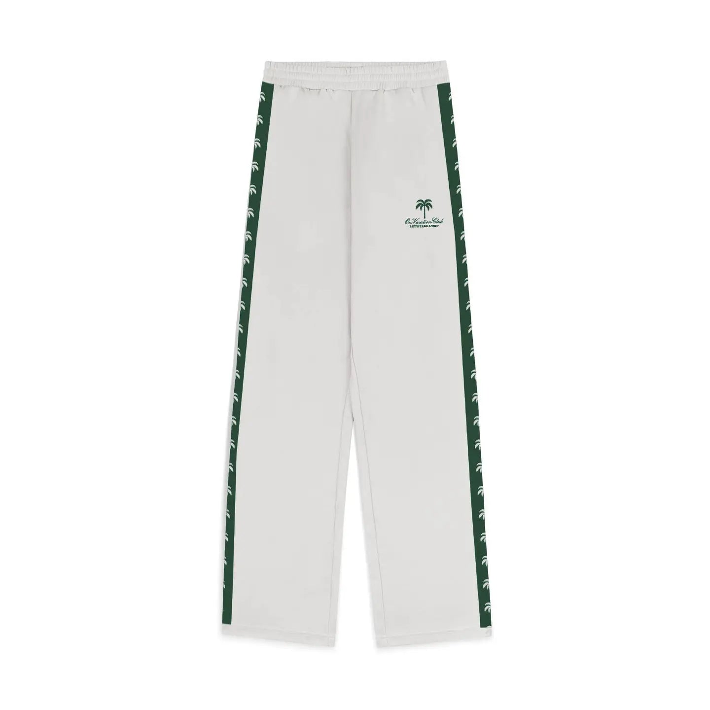 Diese Off-White Trackpants liefern dir 100% Retro-Vibes mit modernem Twist. Der Relaxed Fit sitzt easy, die seitlichen Logo-Stripes mit Palmenprint bringen das Resort-Feeling direkt in deinen Alltag. Ob Festival, Chillen oder City-Stroll – die Pants passen always. Perfekt als Set mit der passenden Trackjacke. Let''s get tropical!