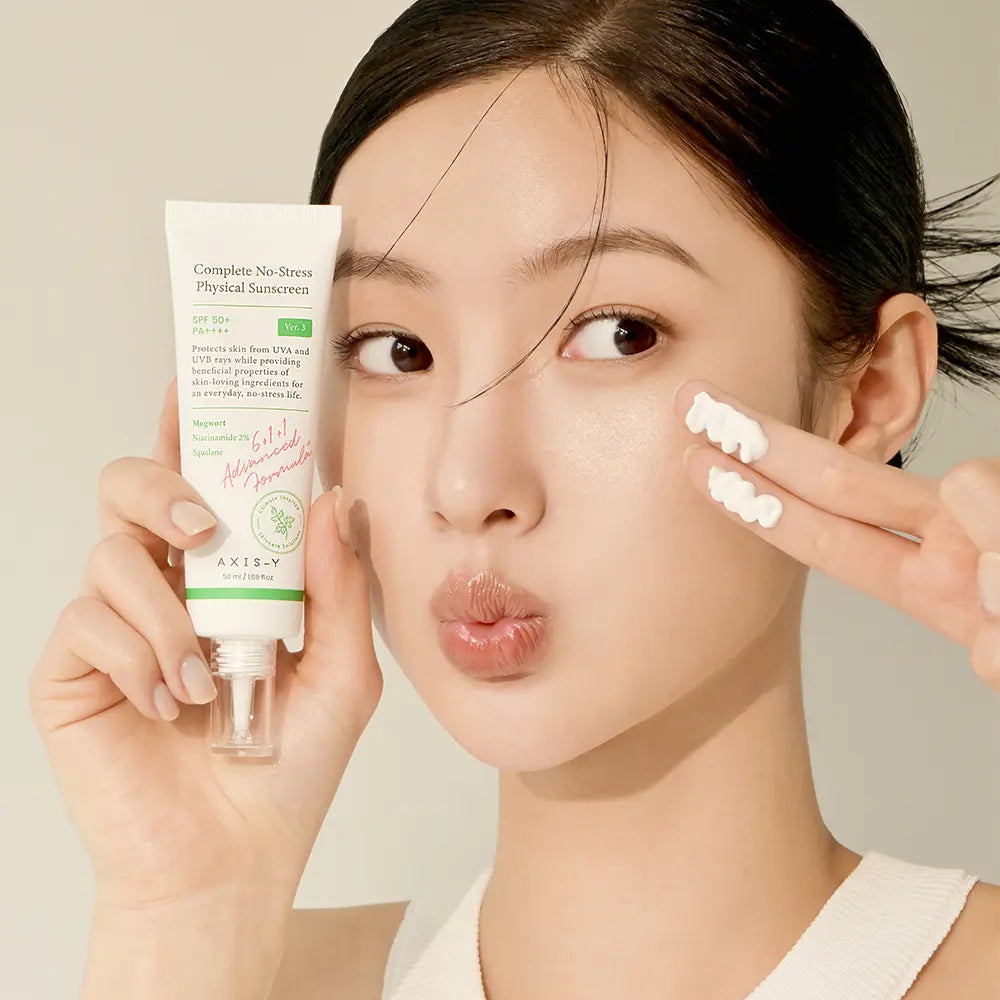 Complete No-stress Physical Sunscreen V.3 - eine leichte Geltextur, die sofort verschmilzt, kein fettiges Gefühl hinterlässt und keinen weißen Film erzeugt – für sofortigen Komfort, selbst bei reaktiver Haut.