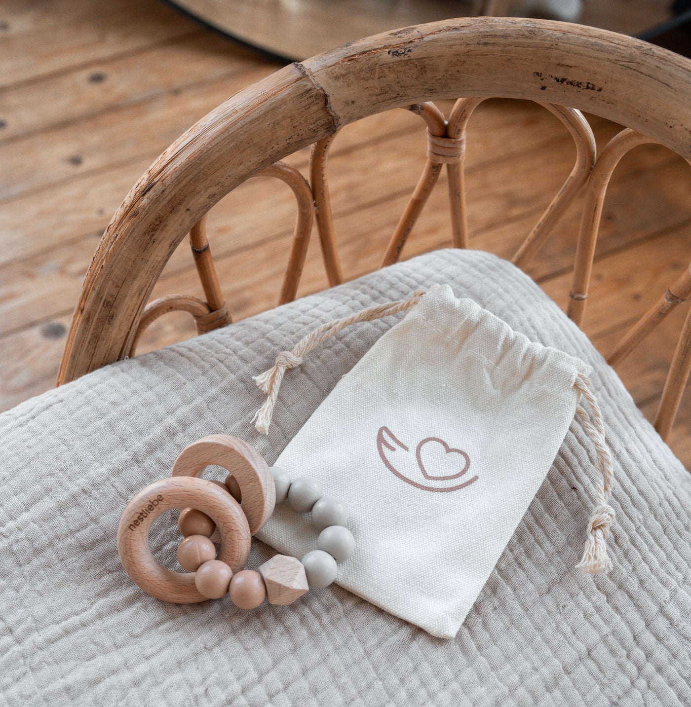 Der Nestliebe Greif- und Beißring Mila ist ein großartiges Babyspielzeug mit pädagogischem Mehrwert. Mit schlichtem Design wird zum Entdecken aller Sinne eingeladen: Hören, Sehen, Schmecken und Tasten. So wird bereits im Babyalter spielerisch die motorische Fähigkeit gefördert sowie beim Durchbrechen der Zähne Unterstützung und Linderung geboten.