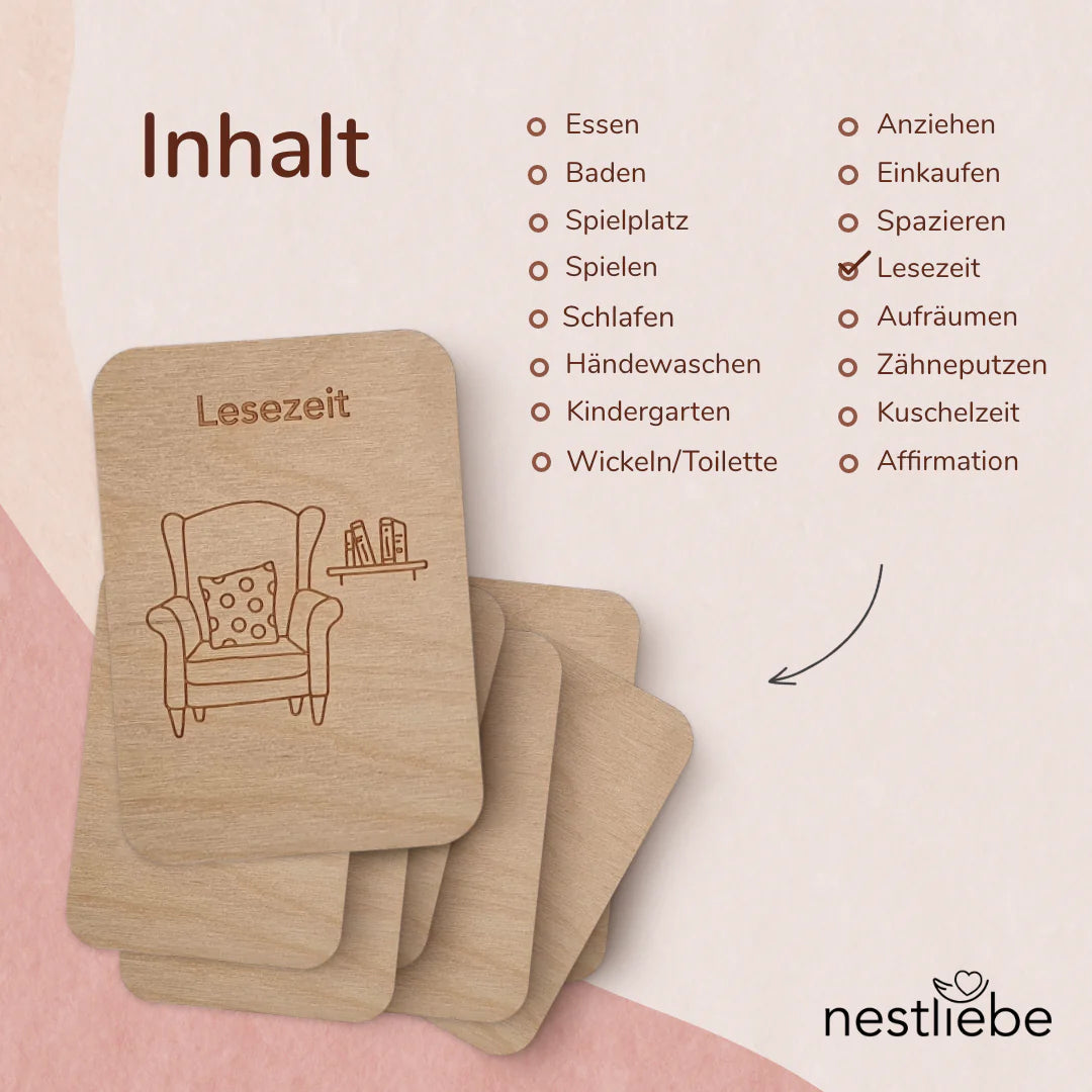 Die nestliebe Routinekarten ZIYA eignen sich für Kinder von klein bis groß und decken eine Reihe von täglichen Aktivitäten Deines Kindes ab und ermöglichen damit eine flexible Strukturierung des Tagesablaufs.